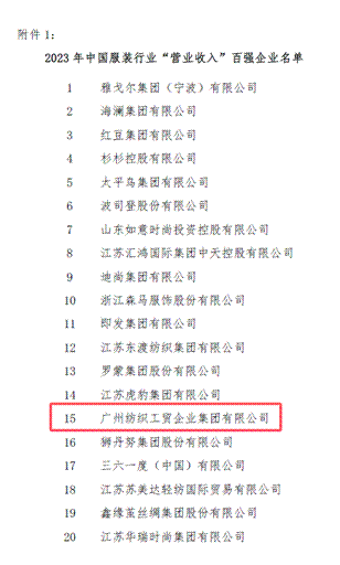 7月22日,《2023年中国服装行业百强企业》榜单发布,平博在线连续三年登榜,位列2023年中国服装行业“营业收入”百强企业第15名!